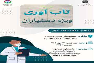 کارگاه تاب آوری ویژه دستیاران به مناسبت هفته سلامت روان در سالن جلسات حوزه ریاست بیمارستان شهید رحیمی با حضور دستیاران داخلی قلب و اطفال با تدریس دکتر فرهادی و همکاری خانم زهرا محمدی روانشناس دانشکده پزشکی و همراهی همتایاران آن ظهر سه شنبه مورخ 29/7/1404 برگزار گردید .